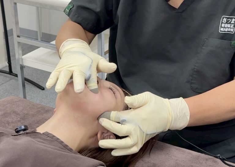 筋肉の無駄な癖や緊張を取るボトックスの様な効果があります。 この効果は口内からのアプローチで しか得られません。 当院は口内からのパルス療法機器の使用を許された、唯一の骨格矯正院となります。