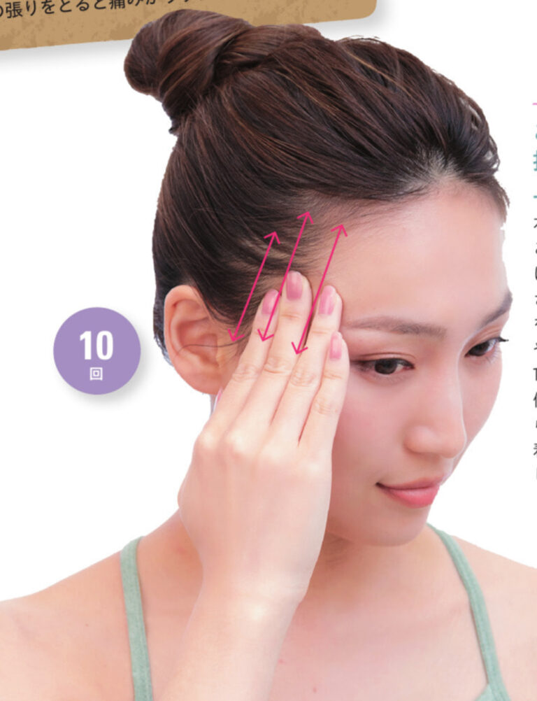 こめかみに指を密着させ、上下に10回動かします。